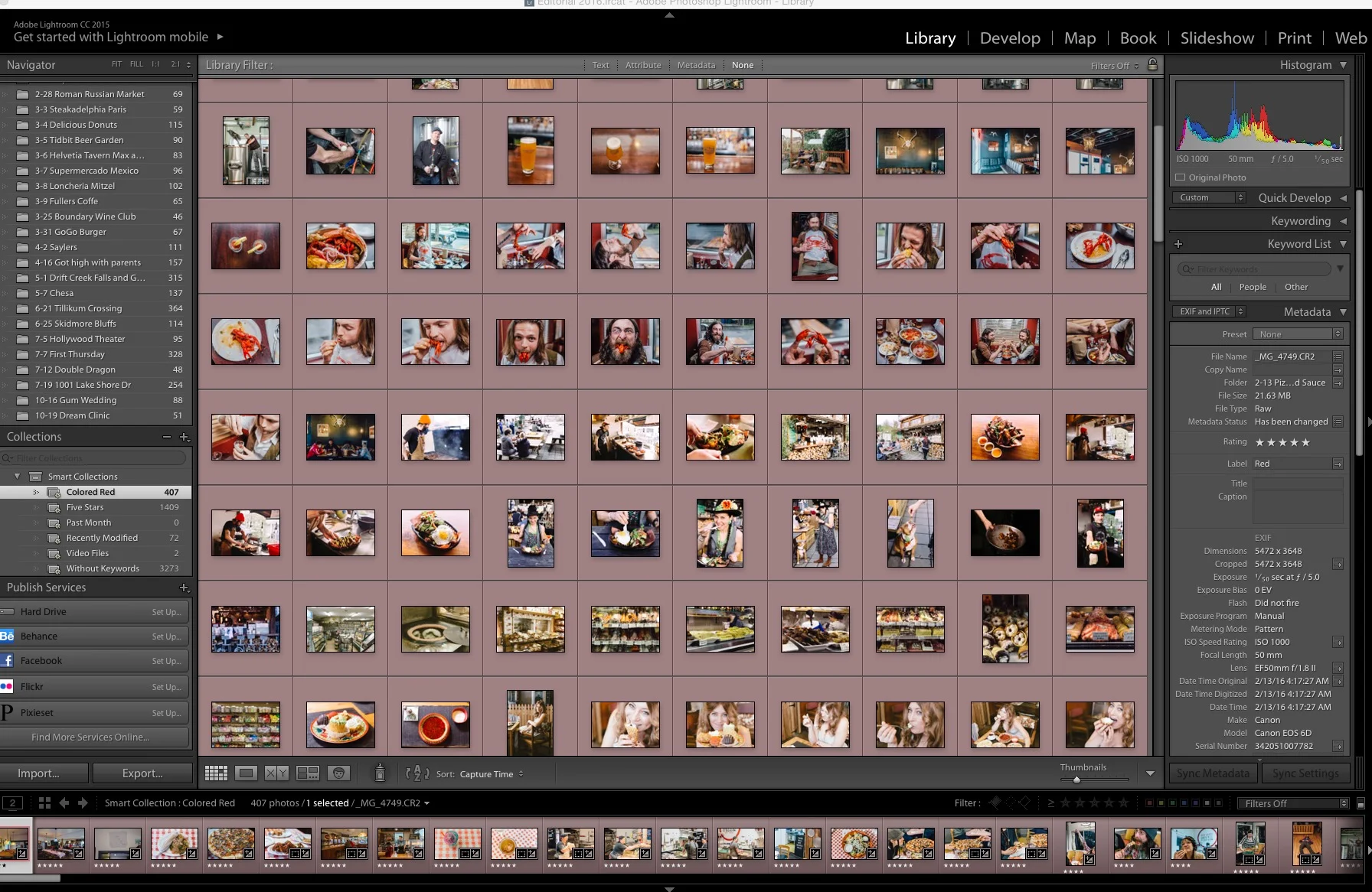 What a task. 1,409 five star photos in my editorial catalog alone! (The five stars are the one I consider for submission to the client.) And I've also got 3 architectural catalogs, a commercial catalog, a portrait catalog and an equine catalog. I like to keep different types of photos in different catalogs, and archive them at the end of the year, creating a new catalog for each type of photography every year. Sometimes, if I fill a catalog, I will archive it early, which I did 3 times for architecture. And, holy wow, I shot a LOT in 2016!