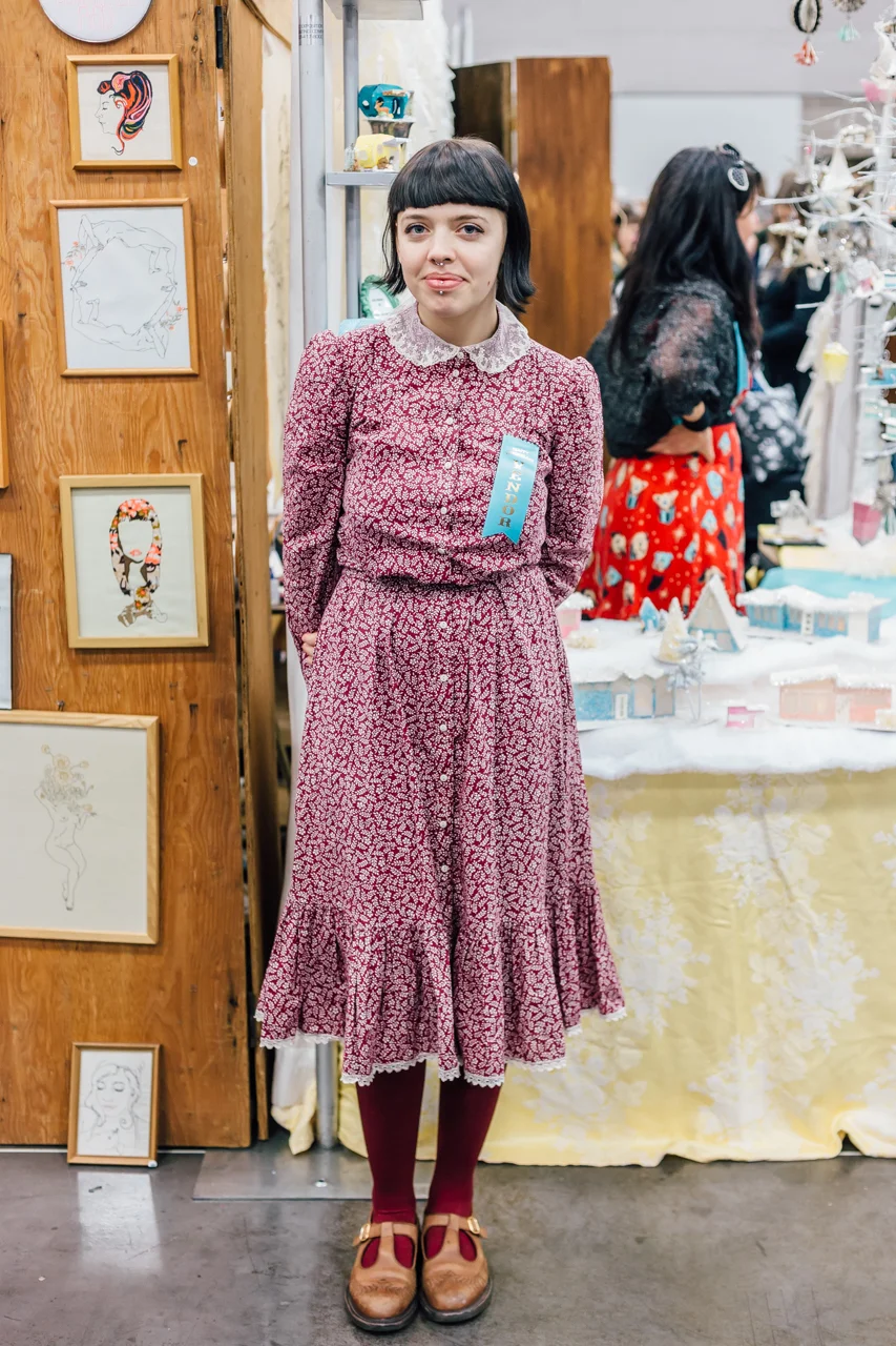 This gal's look reminds me of the previous decade of Portland, when vintage thirft store dresses were all the rage. Kind of a country schoolgirl look, love it!
