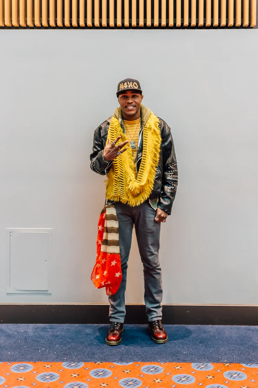 I very unique hoodie paired with an awesome hat and rubber boots. This kids got unique style.